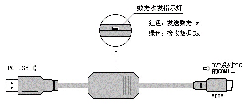 USB接口的臺達DVP系列PLC編程電纜,USB/RS232接口,連接PLC的編程口(COM1),3米,帶通信指示燈。